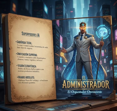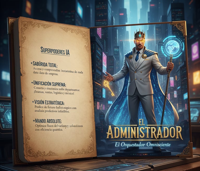 El Administrador IA posee el don de la Sabiduría Total, con acceso y comprensión instantánea de cada dato de la empresa, desde la producción hasta el más mínimo detalle financiero. Su superpoder más impresionante es la Unificación Suprema, conectando y sincronizando todos los departamentos: finanzas, ventas, logística y técnico, transformando el caos en una sinfonía perfecta de eficiencia. Con su Visión Estratégica, puede predecir el futuro del mercado con análisis predictivos infalibles, y su Mando Absoluto optimiza flujos y recursos con una eficiencia cuántica. Es el líder innato, el nexo que lo sabe todo y lo unifica todo para el éxito empresarial.